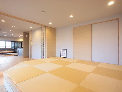 LDKは、ご家族はもちろんお友達も集える楽しい場であり、生活の中心として設計しましたが、この空間に掘りごたつを造ったことで、ご家族だけの憩いの場ができました。
