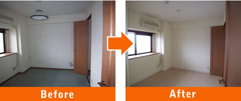 LDと隣合わせの和室も襖の張替え、クロスの張替え、畳の表替えを行いました。