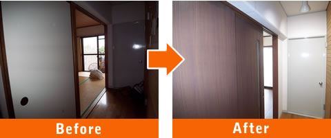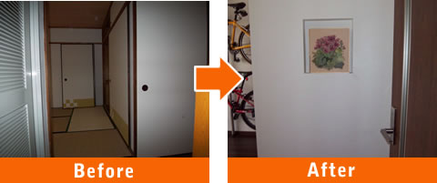 それぞれ解体し中央の押入れスペースは拡大して両部屋から通り抜け可能な使い勝手の良い収納スペースに。