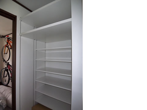 廊下側にも収納スペースを設けました。