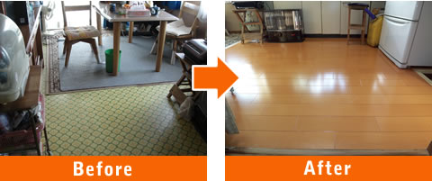 カーペットから車椅子対応の傷や衝撃に強いフローリングに張替え。