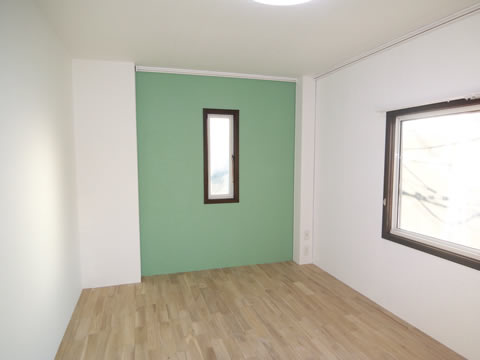 上記と別の部屋には、派手すぎない落ちついたトーンのグリーンに塗装。
