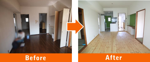 今回は、既存のフローリングの上から重ねて無垢フローリングを施工しました。