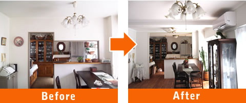 リビングに隣接する和室を解体し、リビングに4畳分取り込み、残りの4.5畳はクローゼットにリフォーム。