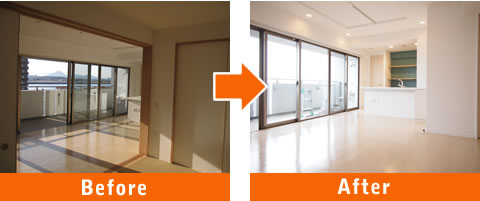 リビングに隣接する和室を解体して、LDKに取り込み広々とした明るい空間にリフォーム。