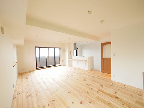 床を無垢フローリングに貼り替え、壁・天井のクロスを一新。