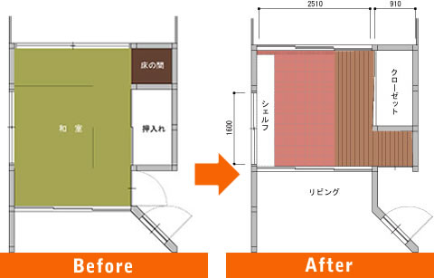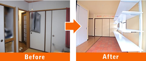 6畳分+1畳分の押入れと半畳分の床の間の和室を、1.5畳分縮小させた収納空間に。