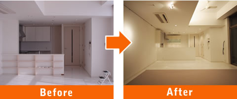 ☆リフォームポイント:シンプルで高級感ある空間を照明を上手に使ってプラン。