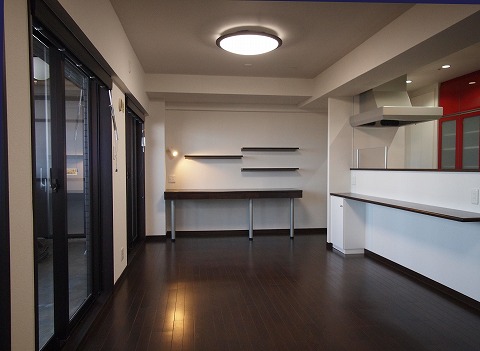 ベランダ側の洋室をリビングダイニングに仕様変更。