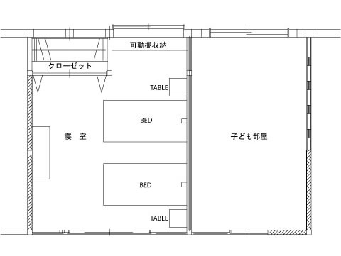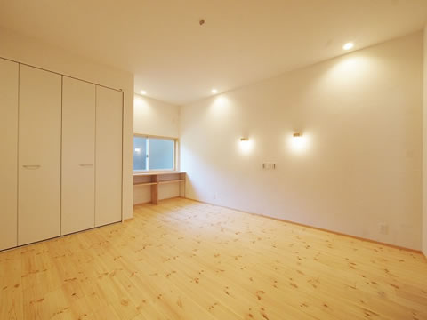 寝室にはクローゼットと可動棚付きのカウンターを造作。