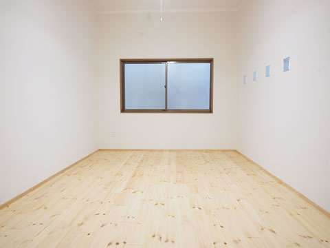 自然素材塗り壁ダイアトーマスを塗り、床には北欧パインの無垢フローリングに自然素材塗料で仕上げた体に優しい空間。