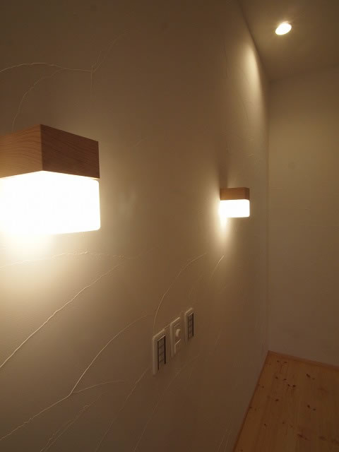 玄関との間仕切り壁には、光を透すガラスブロックをはめ込みました。
