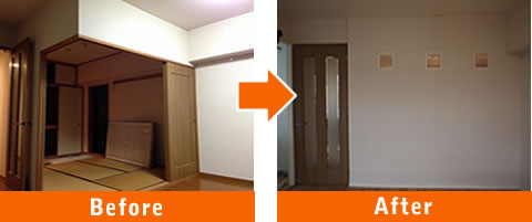 LDKの横にある和室を一部はリビングに取り込み、約2畳分は納戸として残しました。