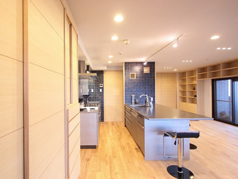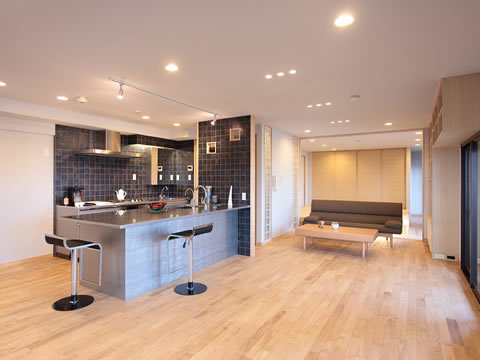 お客様のライフスタイルに合わせ、広々としたLDK空間とオーダーメイドで製作したキッチンに造作家具。