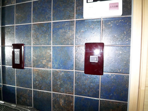 スイッチカバーも白ではなく、タイルとの色調を考え、漆調のカバーを選びました。