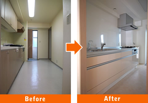 貼りかえるほど傷んでいない壁のクロスと床のフローリングはそのままに、予算内で可能な水廻りを中心とした設備のリフォーム。