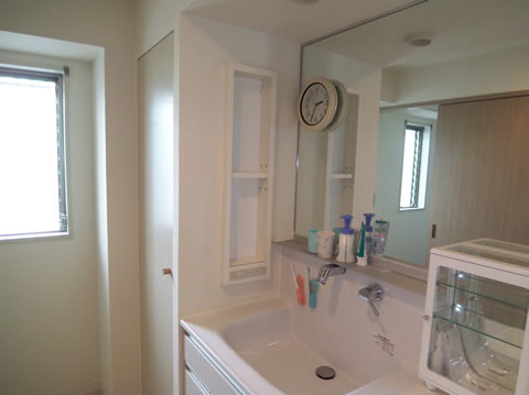 こちらの鏡はそのまま利用し、コンパクトな洗面化粧台を設置。