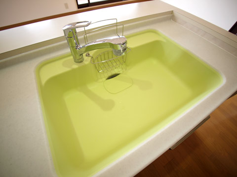 ライムグリーンのシンクは人造大理石。