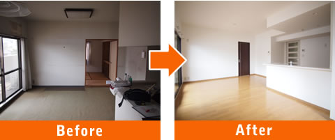 内装は全面張り替えを行い、LD隣にあった和室を洋室にリフォーム。カーペット貼りだった床も遮音フローリングに張り替え。