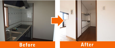 6畳の和室3畳分はリビングに取り込み、残りをウォークインクローゼットにして収納力アップ。