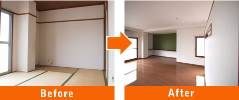 間仕切り壁、和室を撤去し広々と明るい空間に。