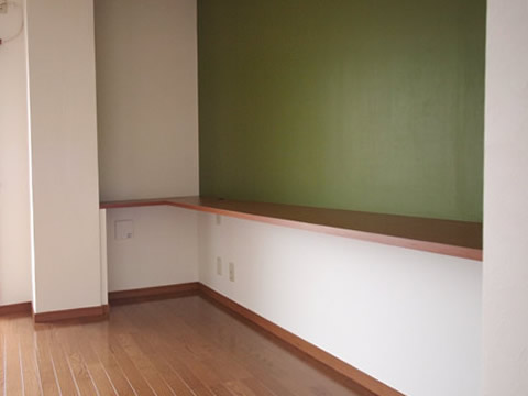 ニッチを利用してカウンターデスクや棚などを各空間にオーダーで制作。