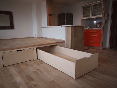 収納上部にもフローリングを貼り、そこでくつろぐことも出来ます。