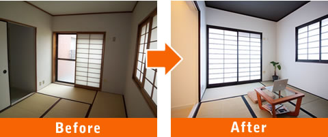 建具も空間に合わせた色に塗替え、明るくなりました。