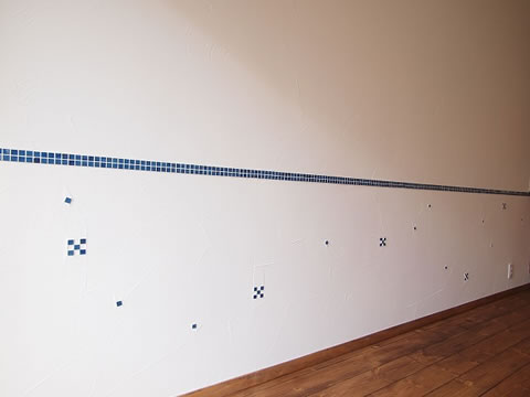 ダイニング空間にベネツィアンガラスでデザインされた模様は、二人の娘さんプローデュースによるもの。