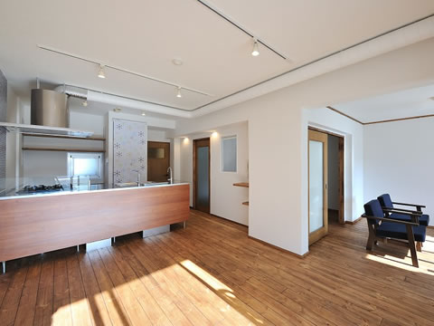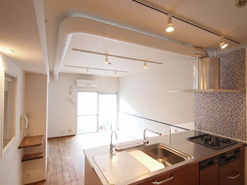 約66平米のマンションをほぼ全面的にリノベーション。水廻り設備機器を全て取り替え、素材にもこだわったオリジナルの空間に。