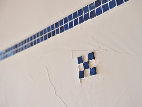 左官さんに協力していただき、その場でデザインした模様をその場で貼っていきました。
