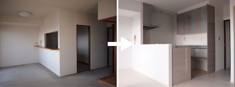 リノベーション前は分譲マンションのキッチンによくある半独立型だったキッチンスペース。