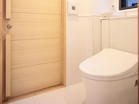 白いタイルに白い壁。白く透明感ある明るい空間に仕上がりました。